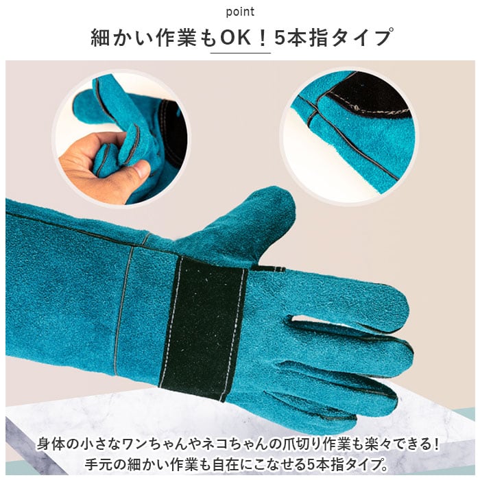 ・身体の小さなワンちゃんやネコちゃんの爪切り作業も楽々できる!手元の細かい作業も自在にこなせる5本指タイプ。