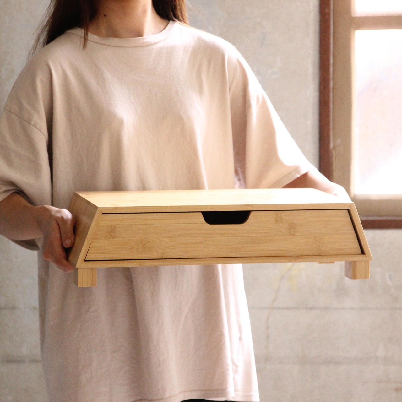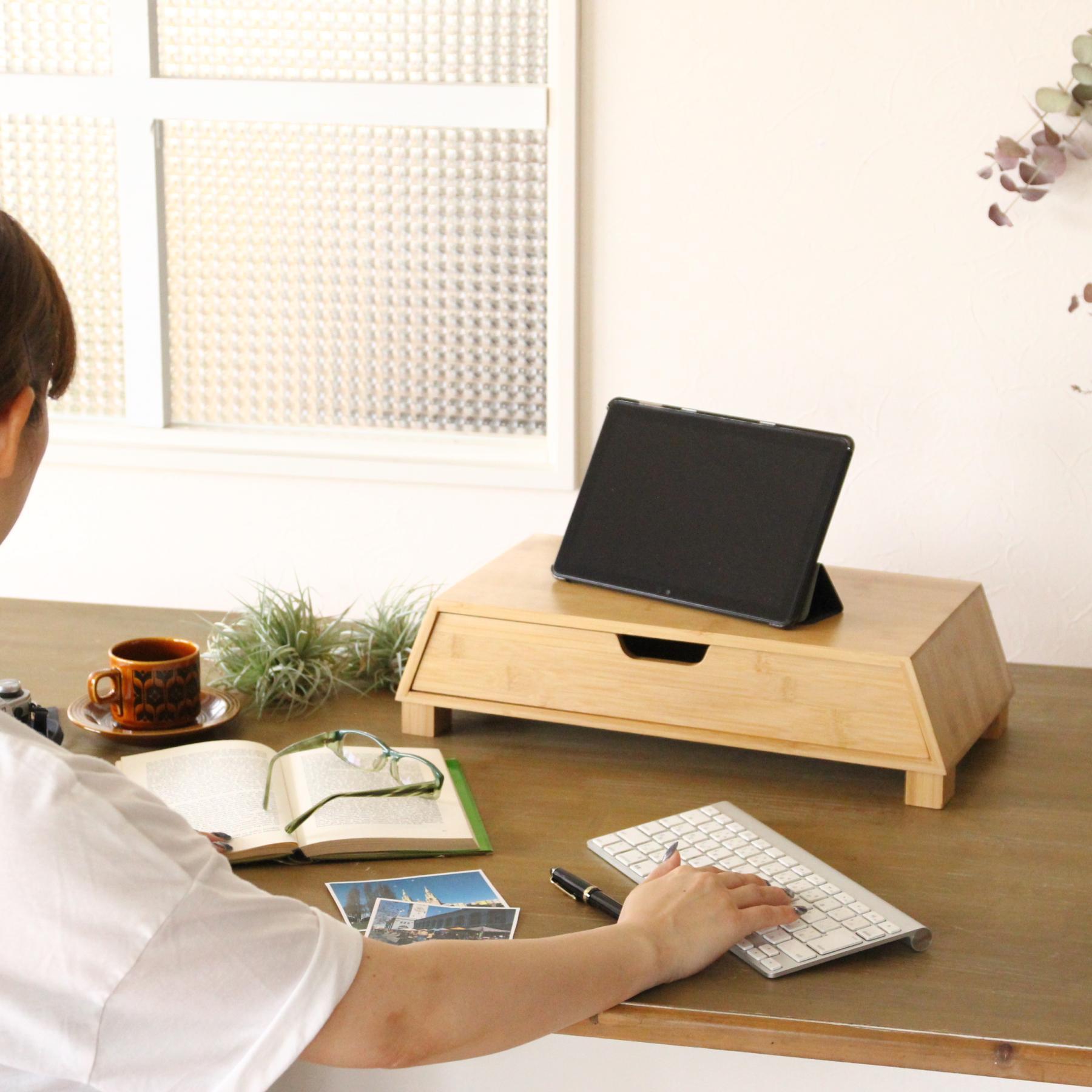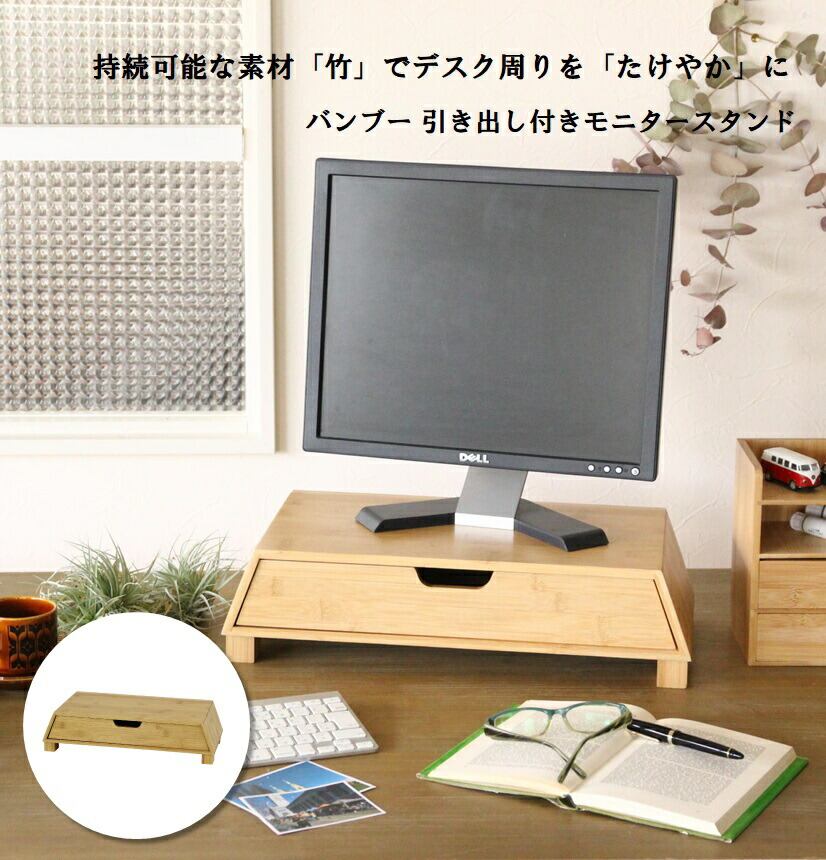 たけやか バンブー 引き出し付きモニタースタンド