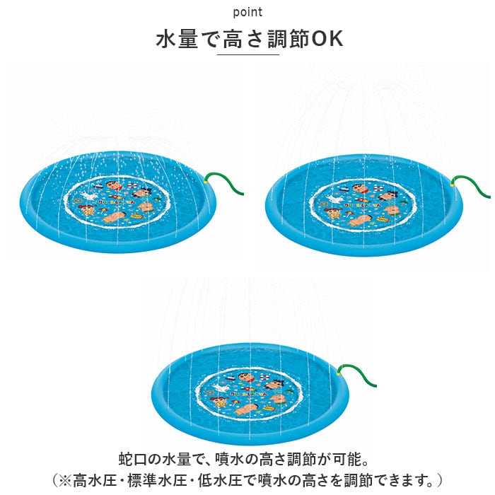 ・蛇口の水量で、噴水の高さ調節が可能。(※高水圧・標準水圧・低水圧で噴水の高さを調節できます。)