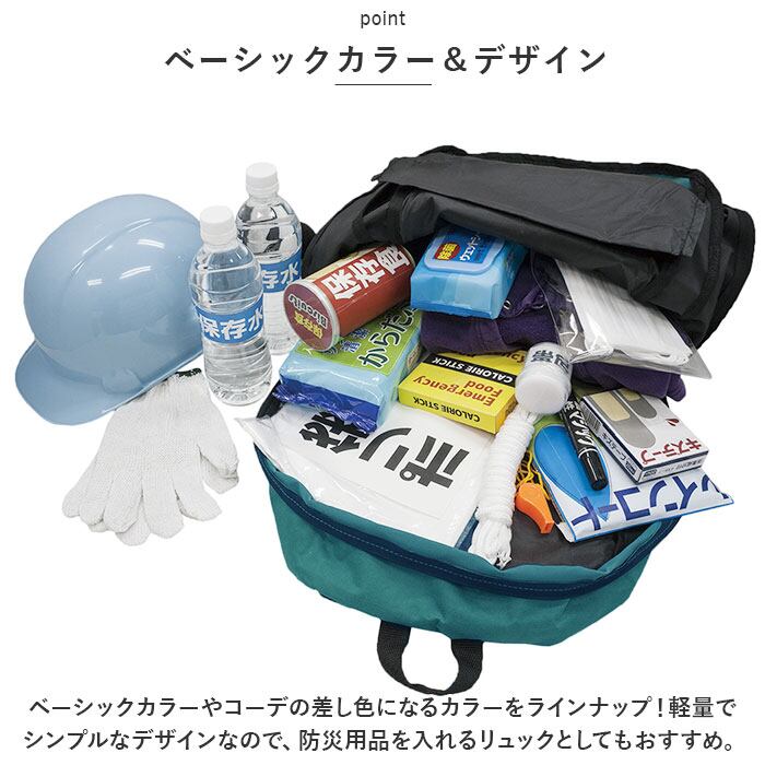 ・ベーシックカラーやコーデの差し色になるカラーをラインナップ!軽量でシンプルなデザインなので、防災用品を入れるリュックとしてもおすすめ。