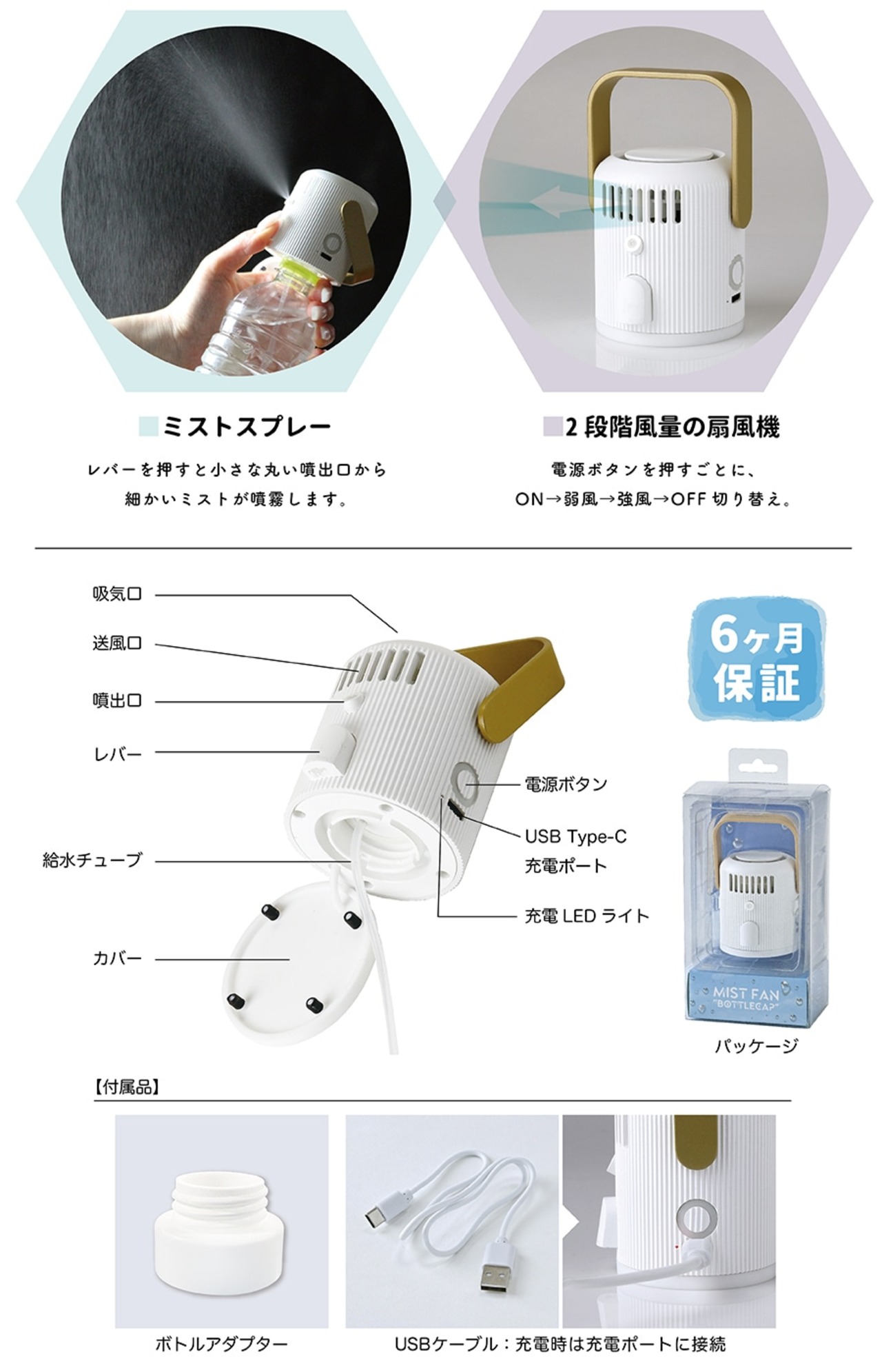 SPICE OF LIFE 扇風機 通販 小型扇風機 手持ち ミスト扇風機 ミストファン ボトルキャップ ミスト ハンディファン 小型 コンパクト 携帯 卓上 ハンディ おしゃれ かわいい 充電式 USB充電 USB扇風機 TTST2320 空調家電 季節家電