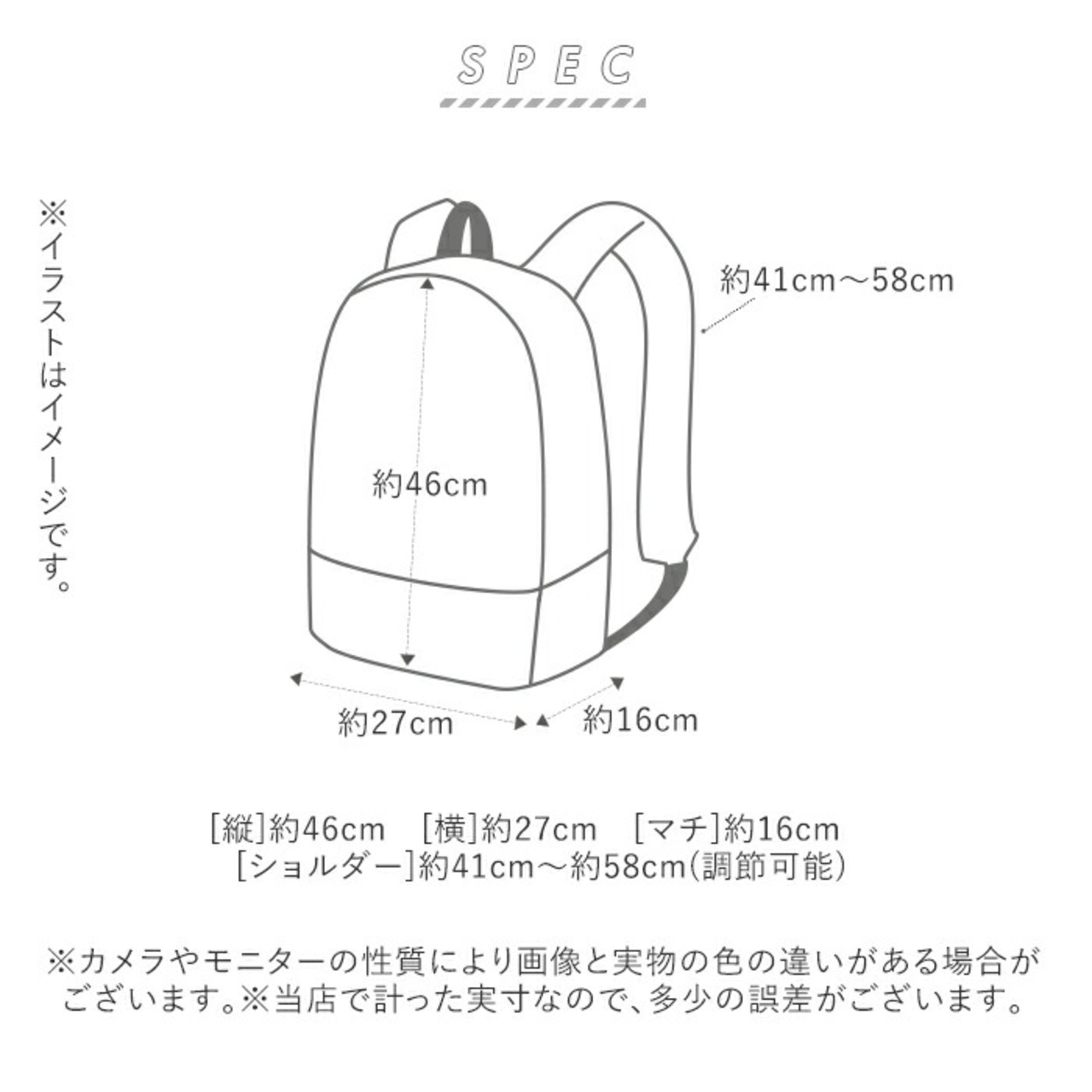 [縦]約46cm/[横]約27cm/[マチ]約16cm