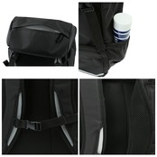 ・チェストストラップ付きで体へのフィット感を高め、荷物の重さによる体への負荷を軽減。背面パッドはメッシュ構造になっているので通気性もバツグン。