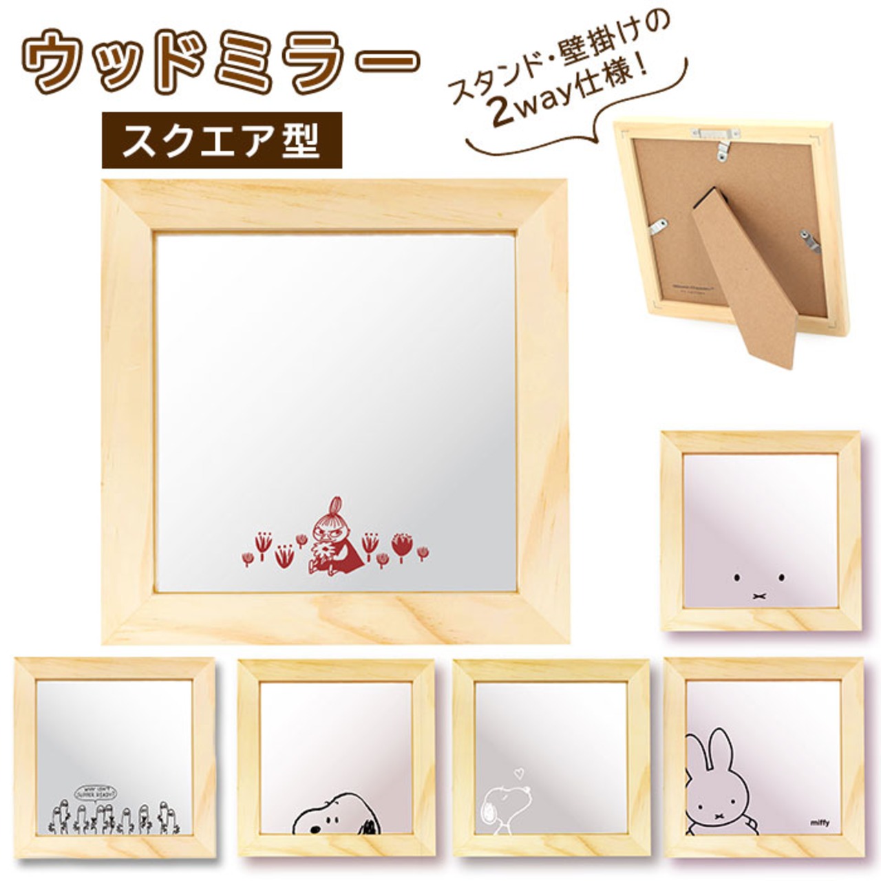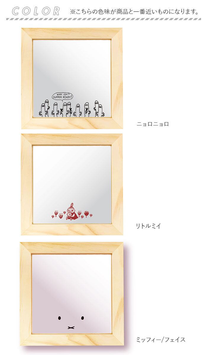 ・ミラーに描かれたキャラクターデザインがアクセント♪スクエア型のウッドミラーが登場。(対象年齢12歳以上)