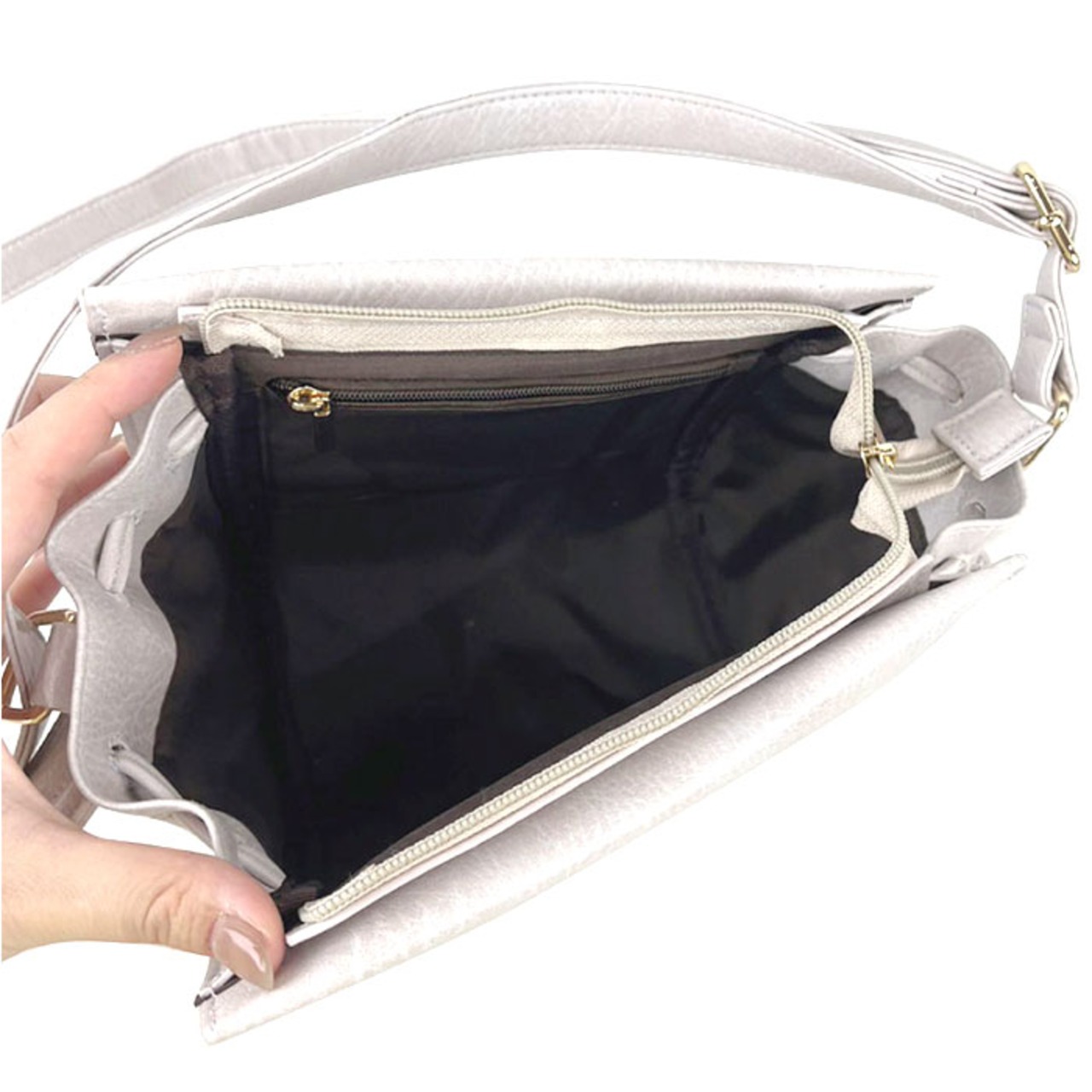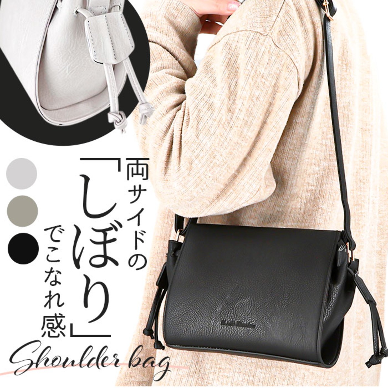 サイドしぼりスクエアショルダーバッグ