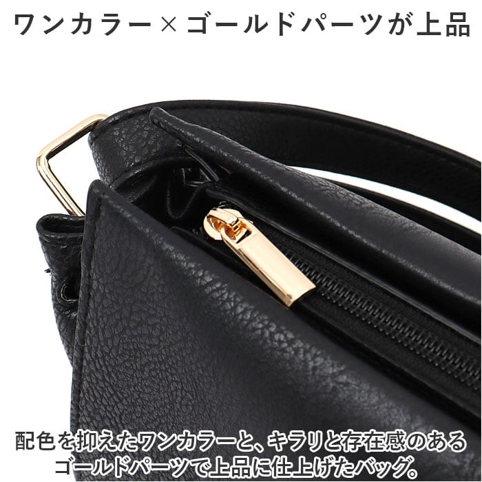 ・配色を抑えたワンカラーと、キラリと存在感のあるゴールドパーツで上品に仕上げたバッグ。