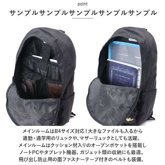 ・メインルームはB4サイズ対応!大きなファイルも入るから通勤・通学用のリュックや、マザーリュックとしても活躍。