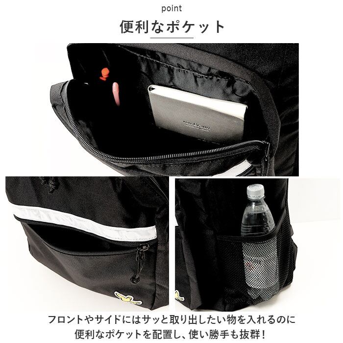 ・フロントやサイドにはサッと取り出したい物を入れるのに便利なポケットを配置し、使い勝手も抜群!