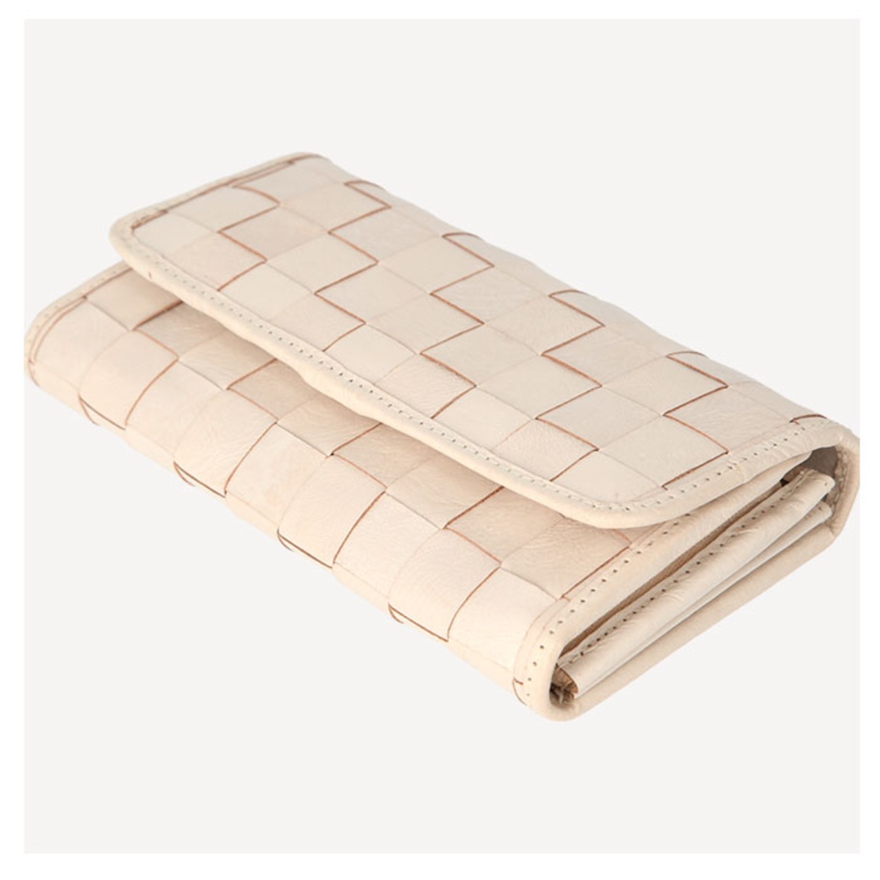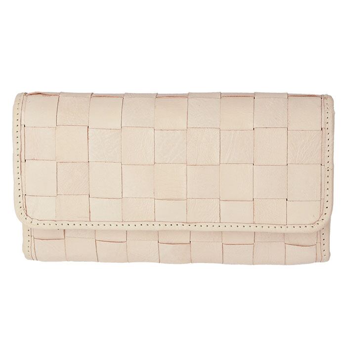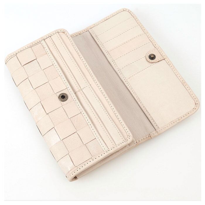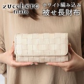 ズッケロフィラート 47734w ホワイト編み込み被せ長財布