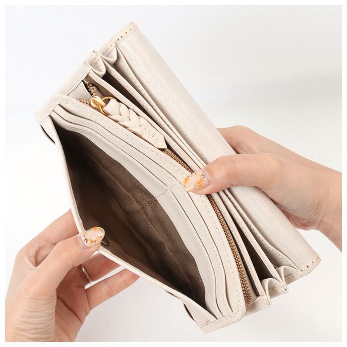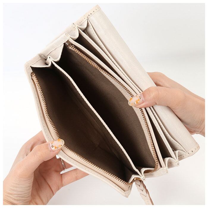 ・大人気の「zuccherofilato」から、しっかり大きめで存在感のある「ホワイト編み込み被せ長財布」が新登場。