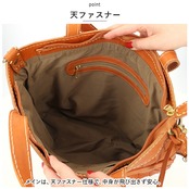 ・メインは、天ファスナー仕様で、中身が飛び出さず安心。