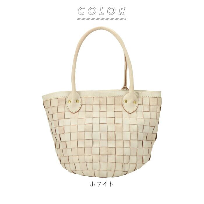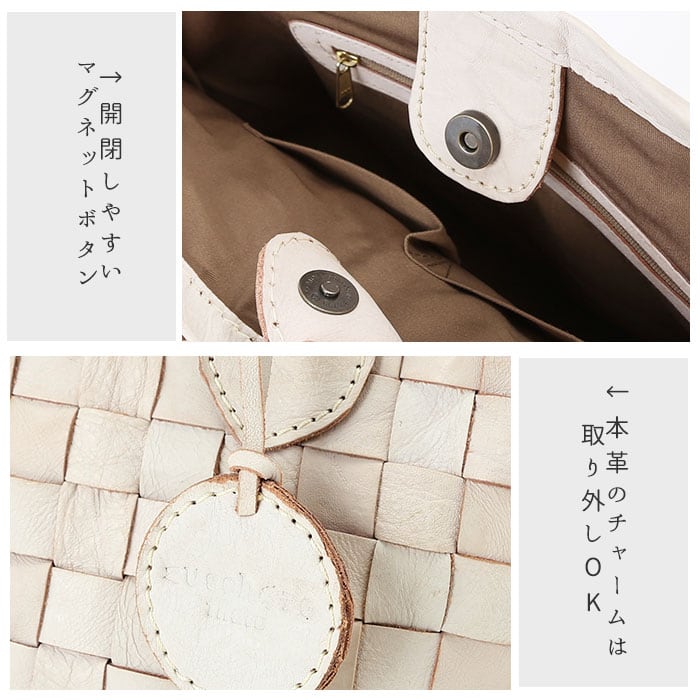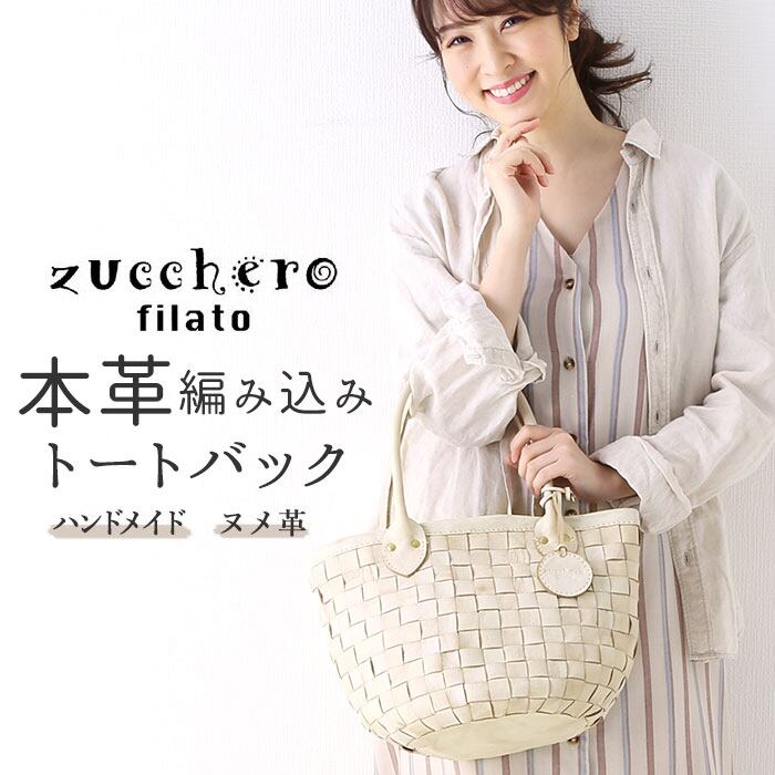 zuccherofilato 48745w ホワイト編み込みトートバック