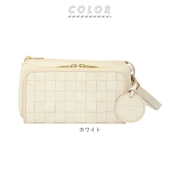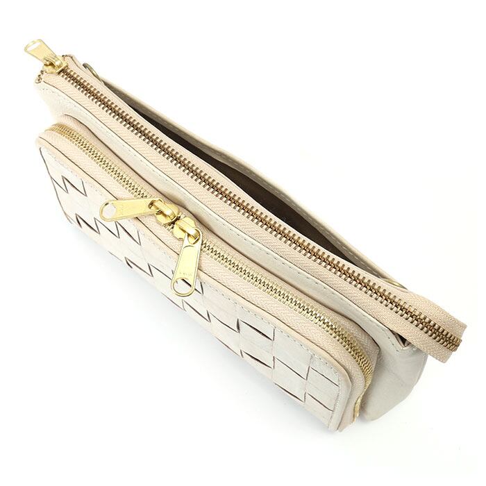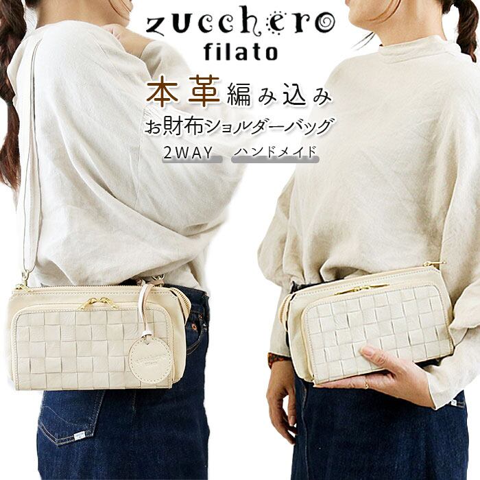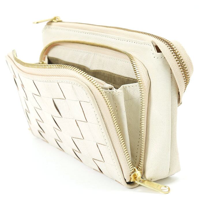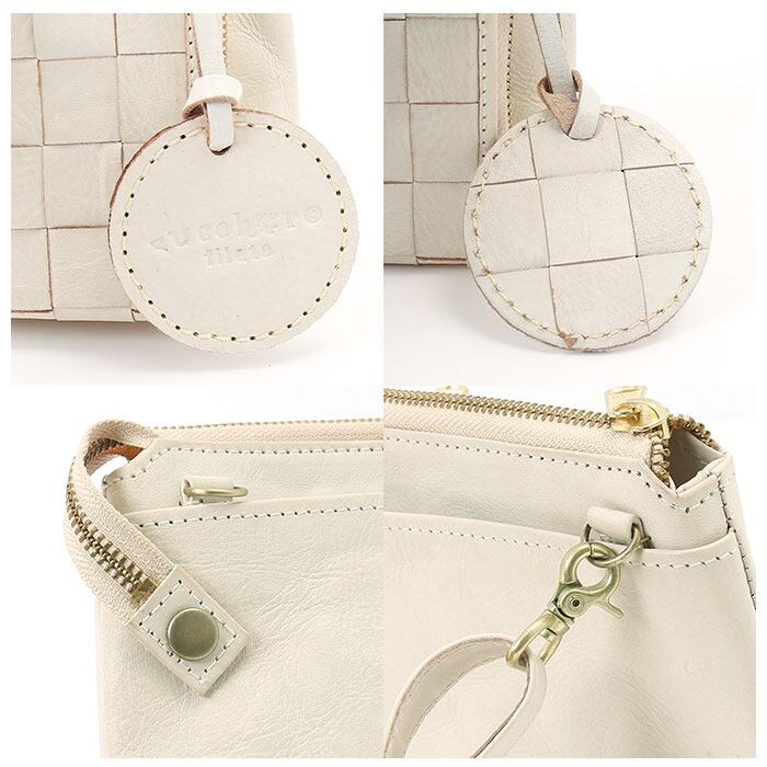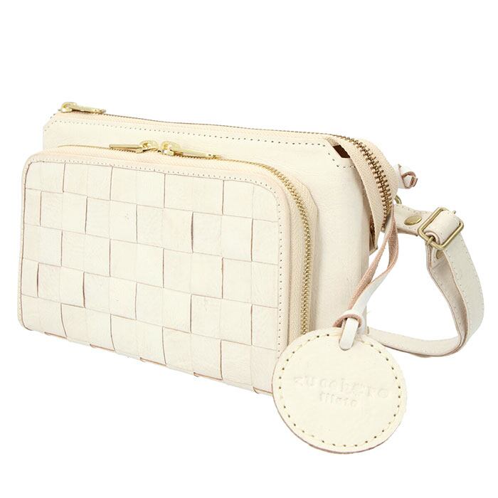 zuccherofilato 48917w ホワイト編み込みお財布ショルダーバッグ
