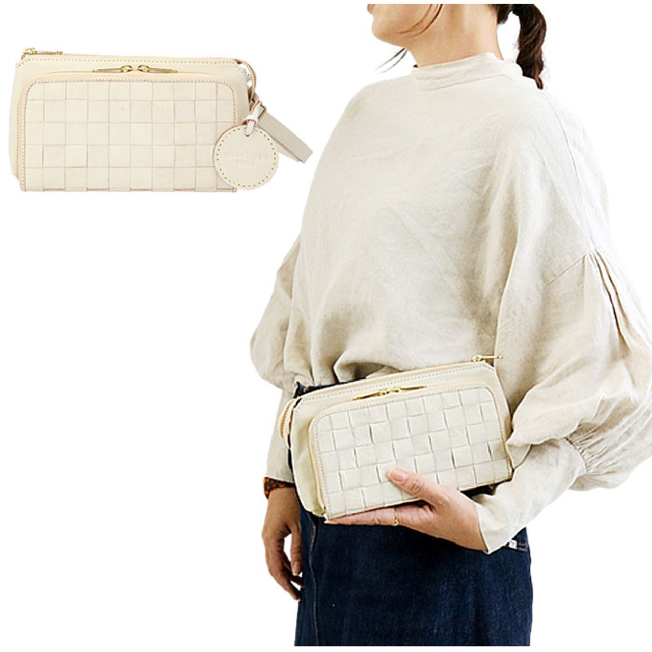 ・本格レザーをバスケットのように編み込んだ素材使いが可愛い!人気の編み込みお財布ショルダーに待望の新色「アンティーク調ホワイト」が仲間入り!