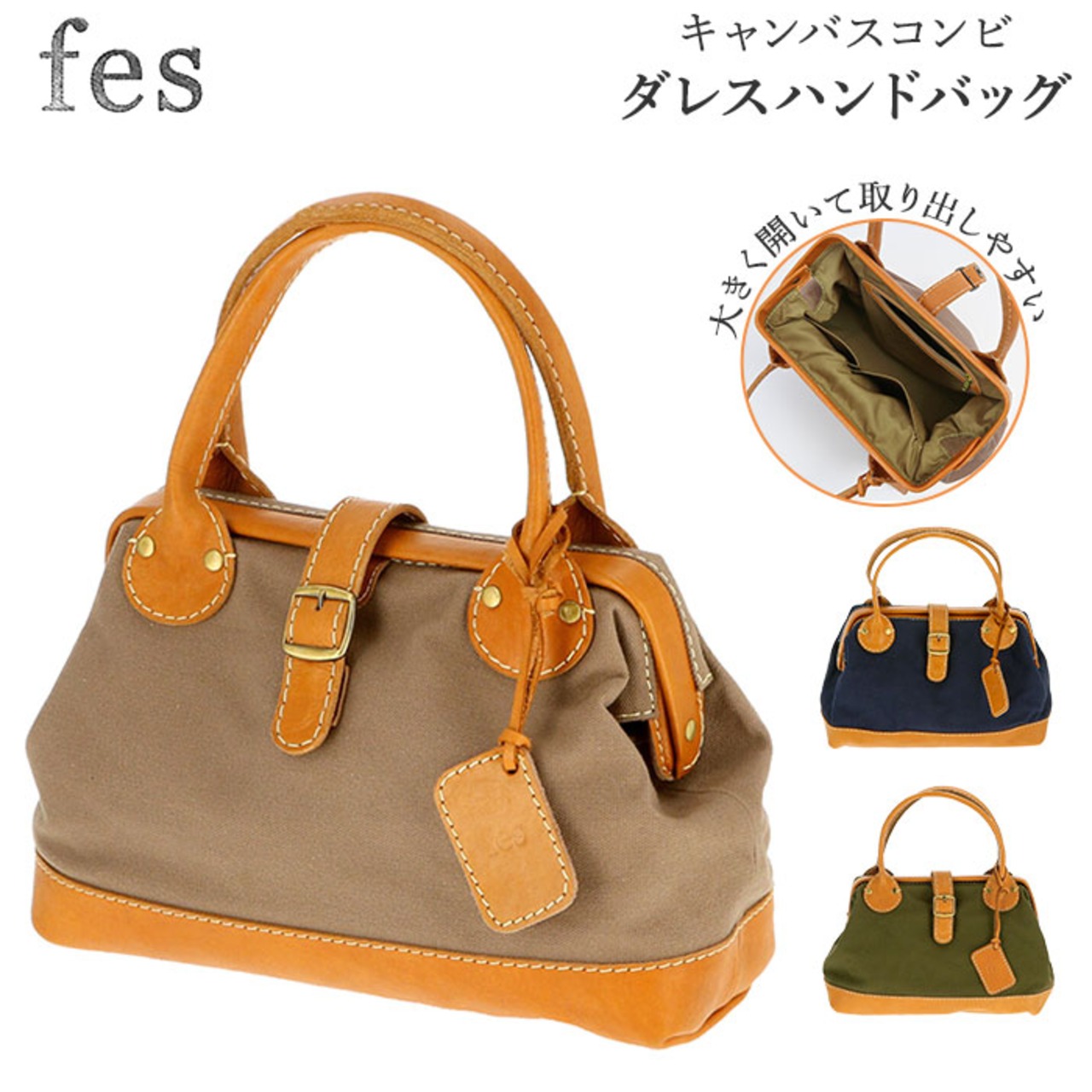 fes 49078 キャンバスコンビダレスハンドバッグ