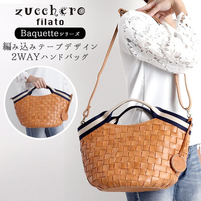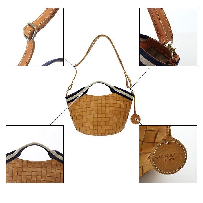 zuccherofilato 49083 編み込みテープデザイン2WAYハンドバッグ