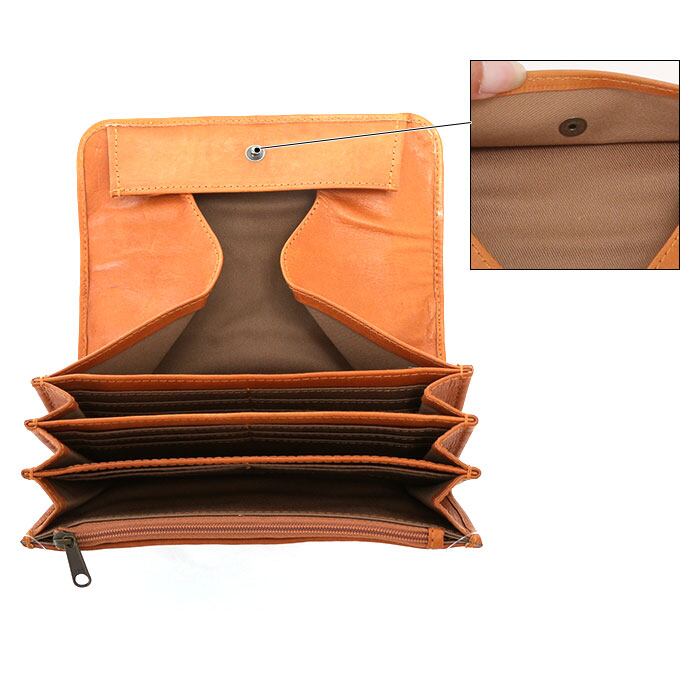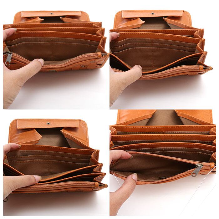 ・内側部分には札入れ×3、カード入れ×22、小銭入れ×1、背面にはオープンポケットが1つと、小分けなどもしやすい仕様。