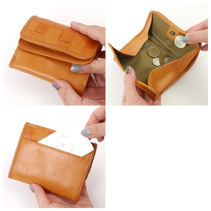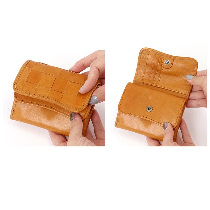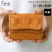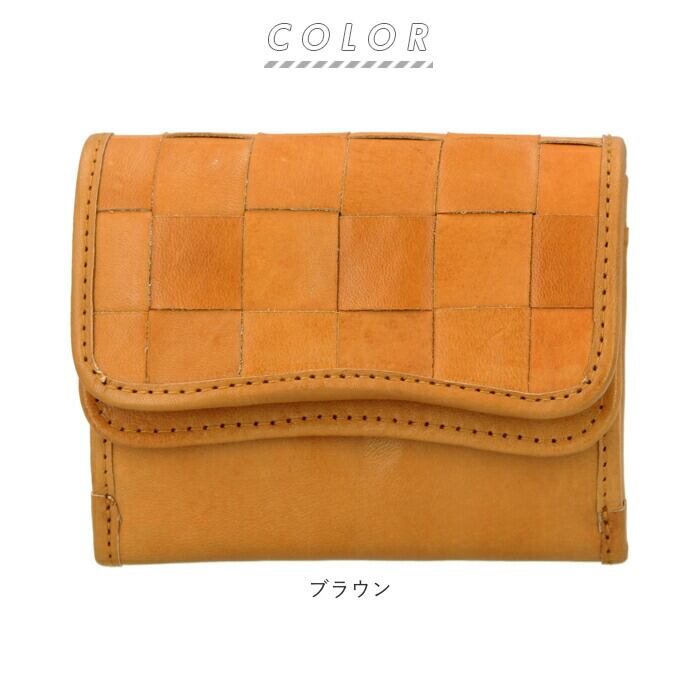 fes 財布 通販 三つ折り財布 フェス 革 レザー 本革 カウレザー 牛革 折り財布 レディース 編み込み メッシュ かぶせ 被せ ボックス型小銭入れ 三つ折り 三つ折 折りたたみ財布 おしゃれ かわいい シンプル ナチュラル 49159 ダブルフラップデザイン折財布 女性用 ウィメンズ