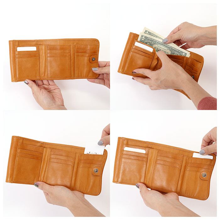 ・二段目は小銭入れになっており、大きく開いて中身が見えやすく、小銭を取り出しやすい。