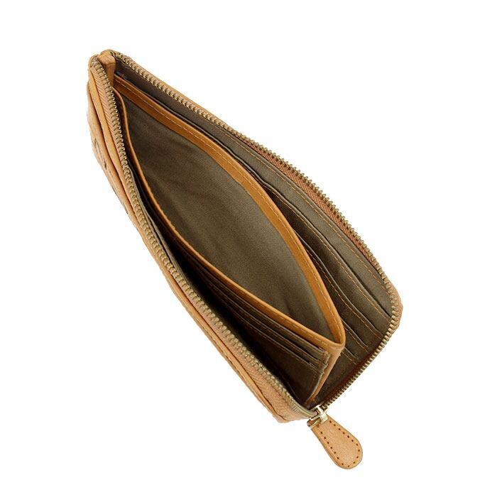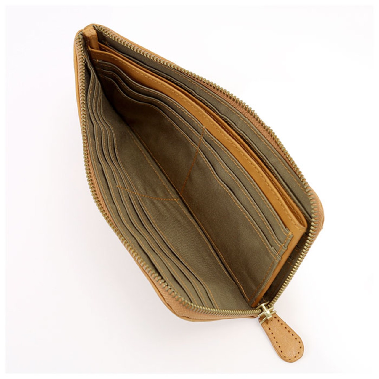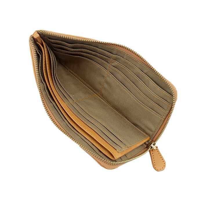 ・開口部はL字ファスナー式で大きく開閉し、中身が見やすいのがポイント。
