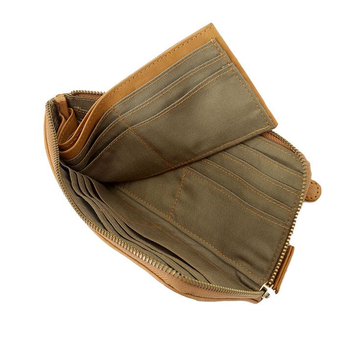 ・小銭入れはひと目で中身を確認できるオープンポケットタイプ。お財布本体の高さと小銭入れの高さを計算して作られているので、小銭が飛び出てくることなく安心。