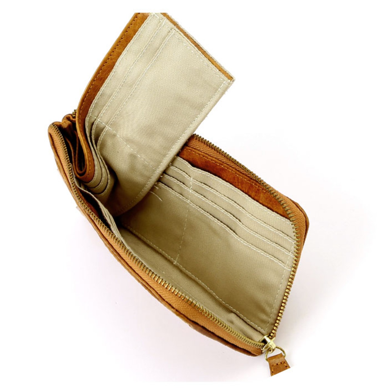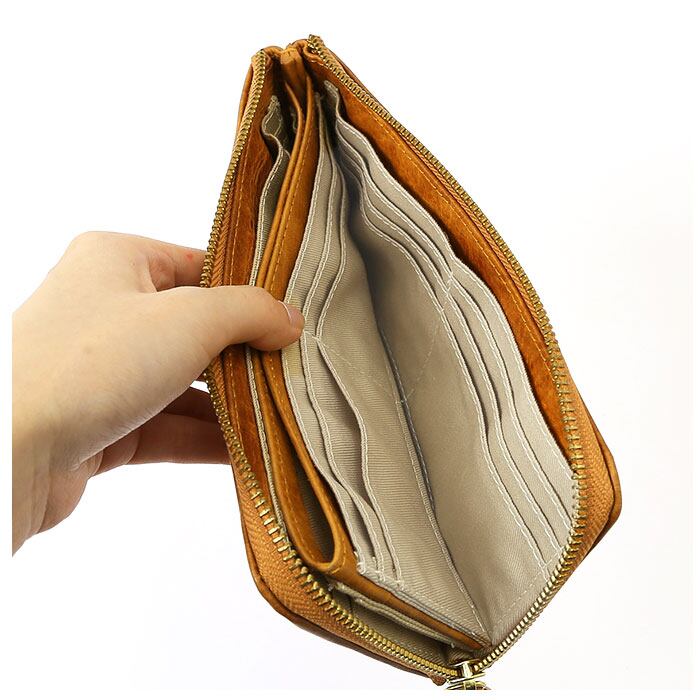 ・小銭入れはひと目で中身を確認できるオープンポケットタイプ。お財布本体の高さと小銭入れの高さを計算して作られているので、小銭が飛び出てくることなく安心。