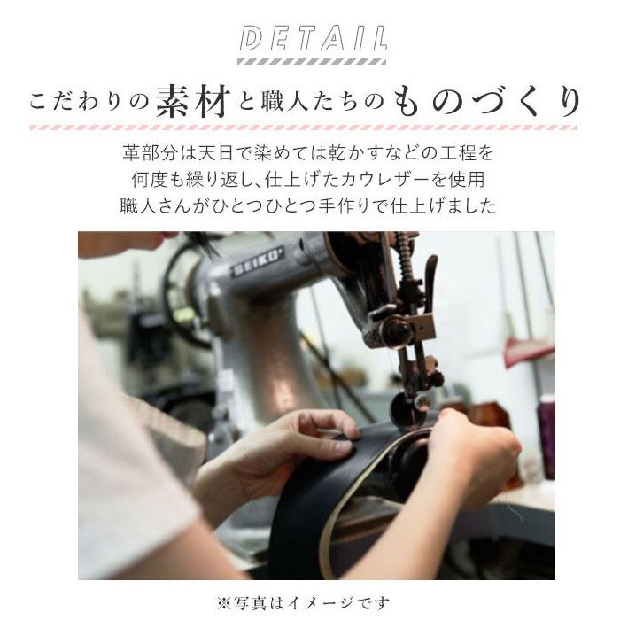 ・職人の手により、1枚ずつ手で染めては天日で乾かすなどの工程を、何度も繰り返して仕上げたカウレザーを使用。