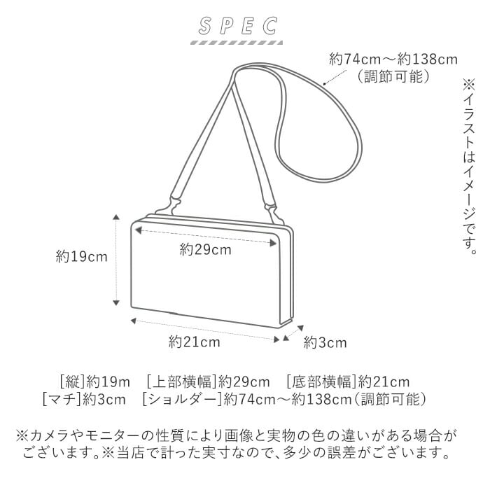 [マチ]約3cm/[ショルダー]約74cm~約138cm(調節可能)