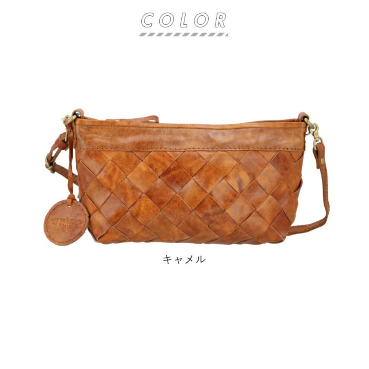・バッグと同じ本革に作られた、ブランドロゴ入りのチャーム付き。