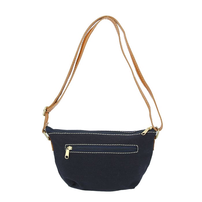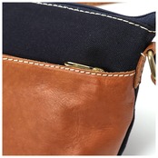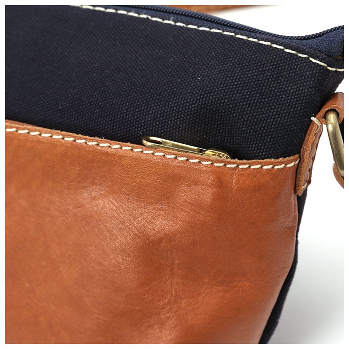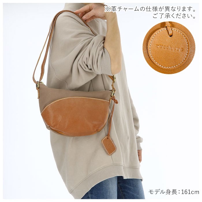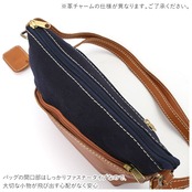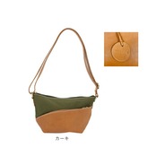 ・白いステッチで縁取られた本革パーツと、ナチュラルなキャンバス生地とのコンビネーションがお洒落♪コロンと可愛らしいショルダーバッグ。