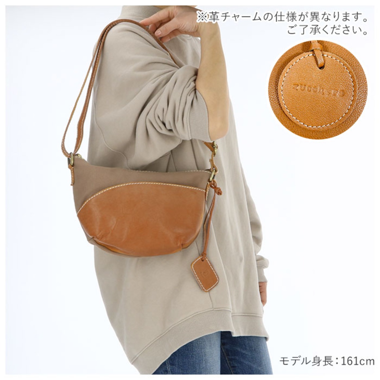 ・本革素材ならではの温かみのある質感と経年変化が楽しめるのも◎「zucchero」のロゴが刻印されたレザータグ付き。