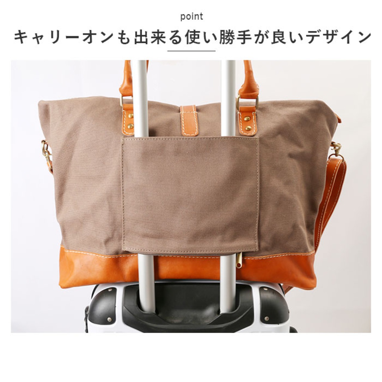 ・旅行に最適な大容量サイズで、キャリーオンも出来る使い勝手が良いデザイン。