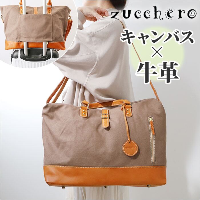 ズッケロ バッグ zucchero 49575 通販 ボストンバッグ ボストンバック レディース ショルダー 肩掛け 斜め掛け 2way ボストン 旅行 出張 大容量 通勤 通学 革 レザー 牛革 キャンバス おしゃれ シンプル 大人 かわいい カジュアル ナチュラル レディースバッグ