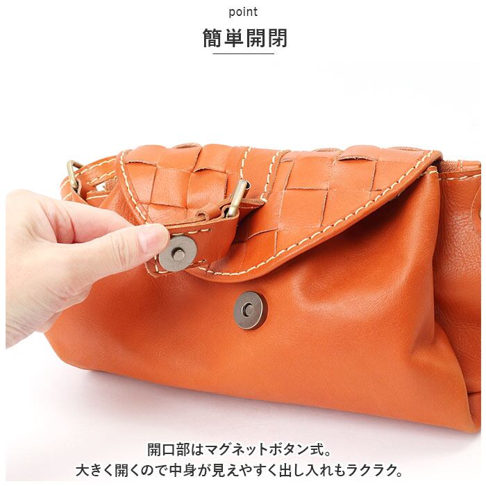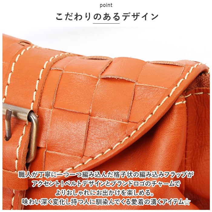 ・職人が丁寧に一つ一つ編み込んだ格子状の編み込みフラップがアクセント!