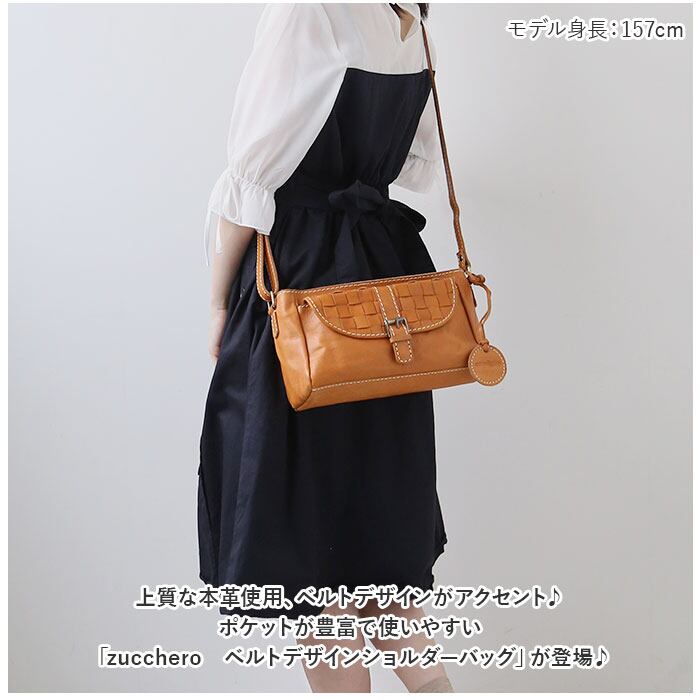 ・上質な本革使用、ベルトデザインがアクセント♪ポケットが豊富で使いやすい「zucchero ベルトデザインショルダーバッグ」が登場♪
