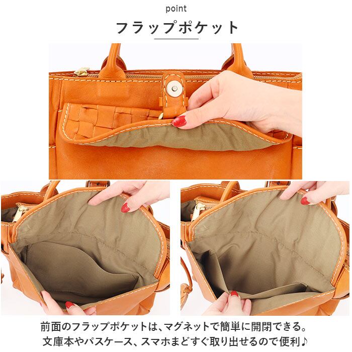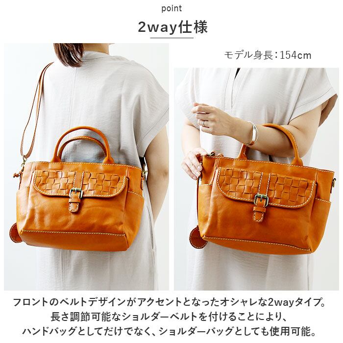 ・長さ調節可能なショルダーベルトを付けることにより、ハンドバッグとしてだけでなく、ショルダーバッグとしても使用可能。