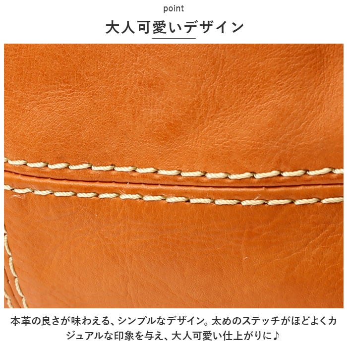 ・本革の良さが味わえる、シンプルなデザイン。太めのステッチがほどよくカジュアルな印象を与え、大人可愛い仕上がりに♪