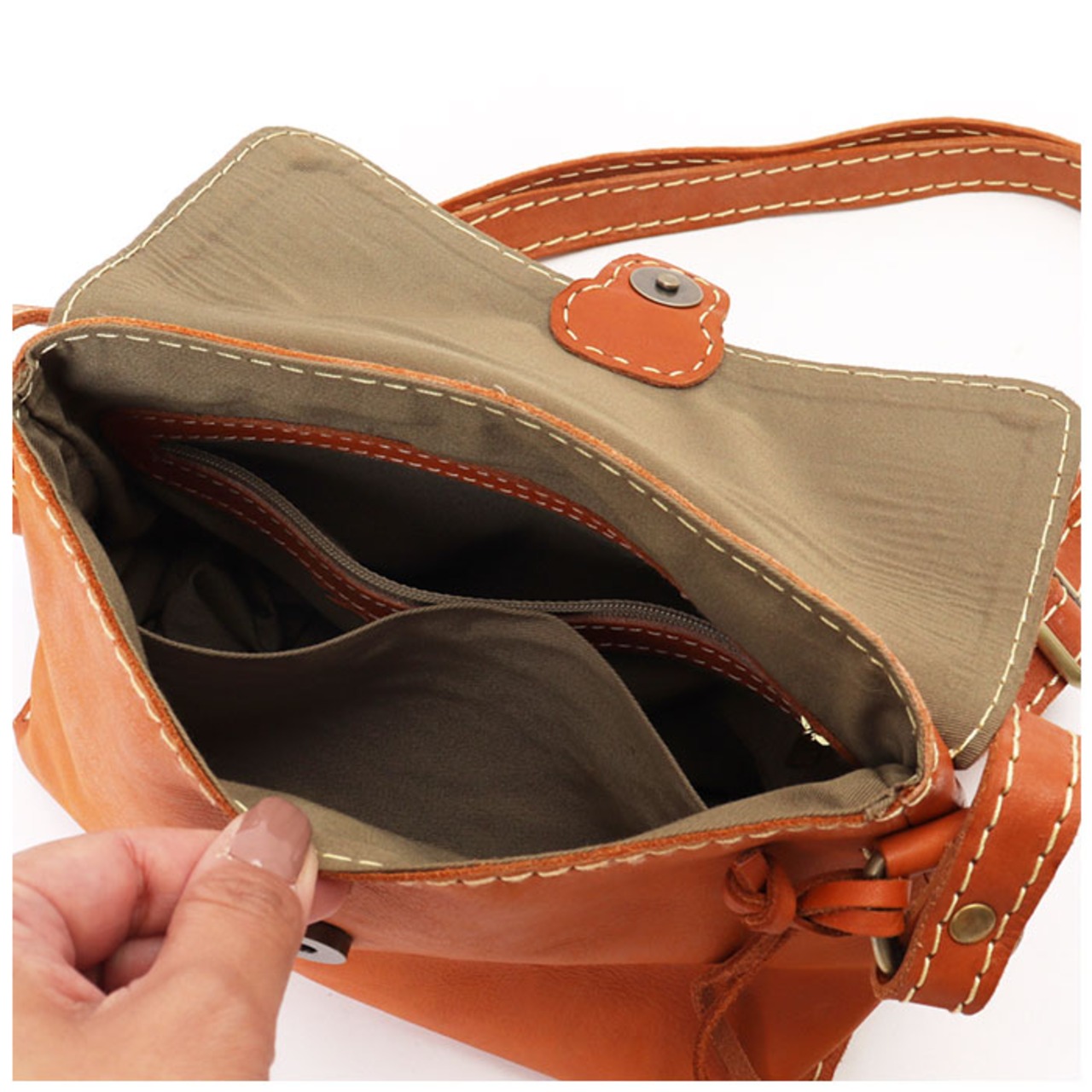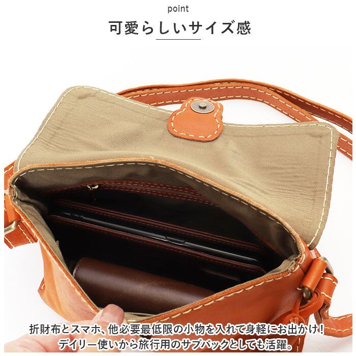 ・折財布とスマホ、他必要最低限の小物を入れて身軽にお出かけ!デイリー使いから旅行用のサブバックとしても活躍。