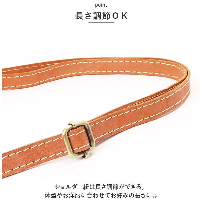 ・ショルダー紐は長さ調節ができる。体型やお洋服に合わせてお好みの長さに◎