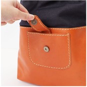 ・メイン収納はスナップボタン仕様。簡単に開閉でき、バッグの中身が見えない&飛び出さないので安心。