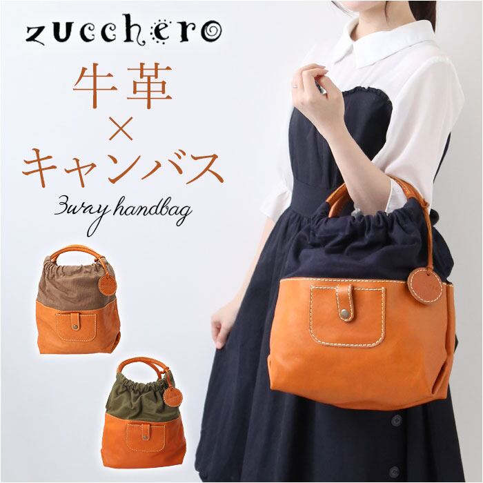 ・本革とキャンバス生地の切り替えデザインが可愛い♪「zucchero ハンドバッグ」が登場!