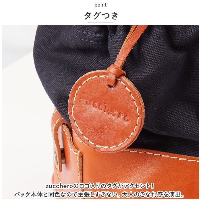 ・zuccheroのロゴ入りのタグがアクセント!バッグ本体と同色なので主張しすぎない。大人のこなれ感を演出。