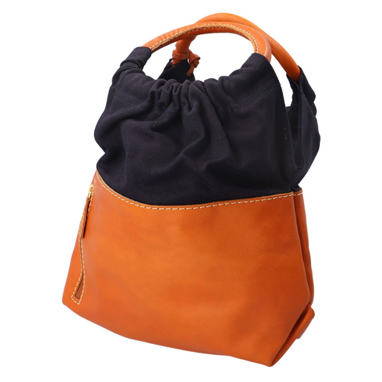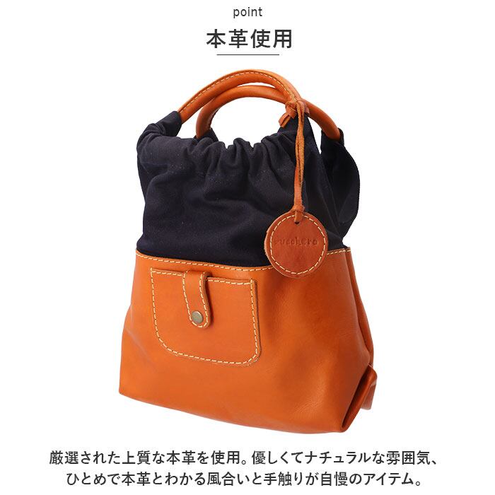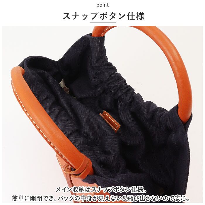 ・ハンドル部分はキャンバス生地仕様でくしゅっと立体的デザイン。本革とキャンバス生地の切り替えが新しい、大人のハンドバッグ。