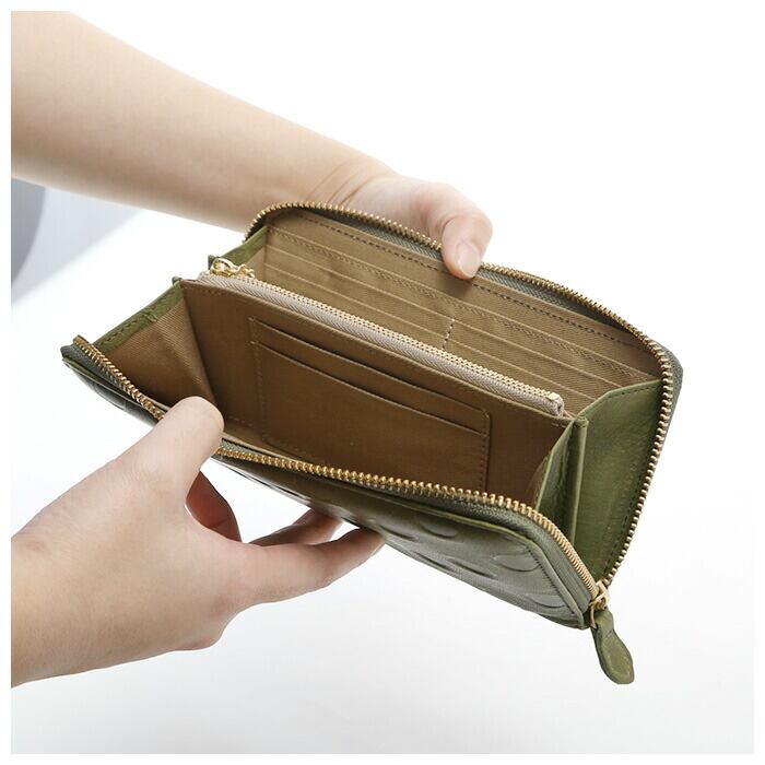 ・内側部分には札入れ×2、カード入れ×14、小銭入れ×1、フリーポケット×2、小分けなどもしやすい仕様。
