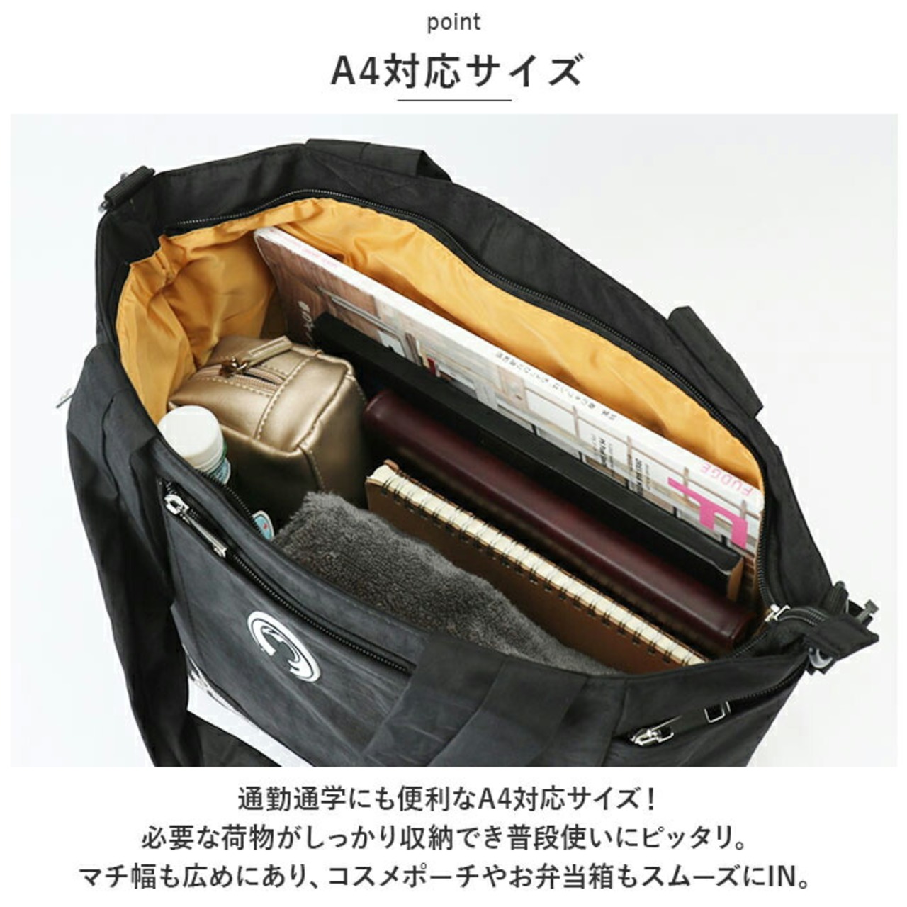 ・通勤通学にも便利なA4対応サイズ!必要な荷物がしっかり収納でき普段使いにピッタリ。