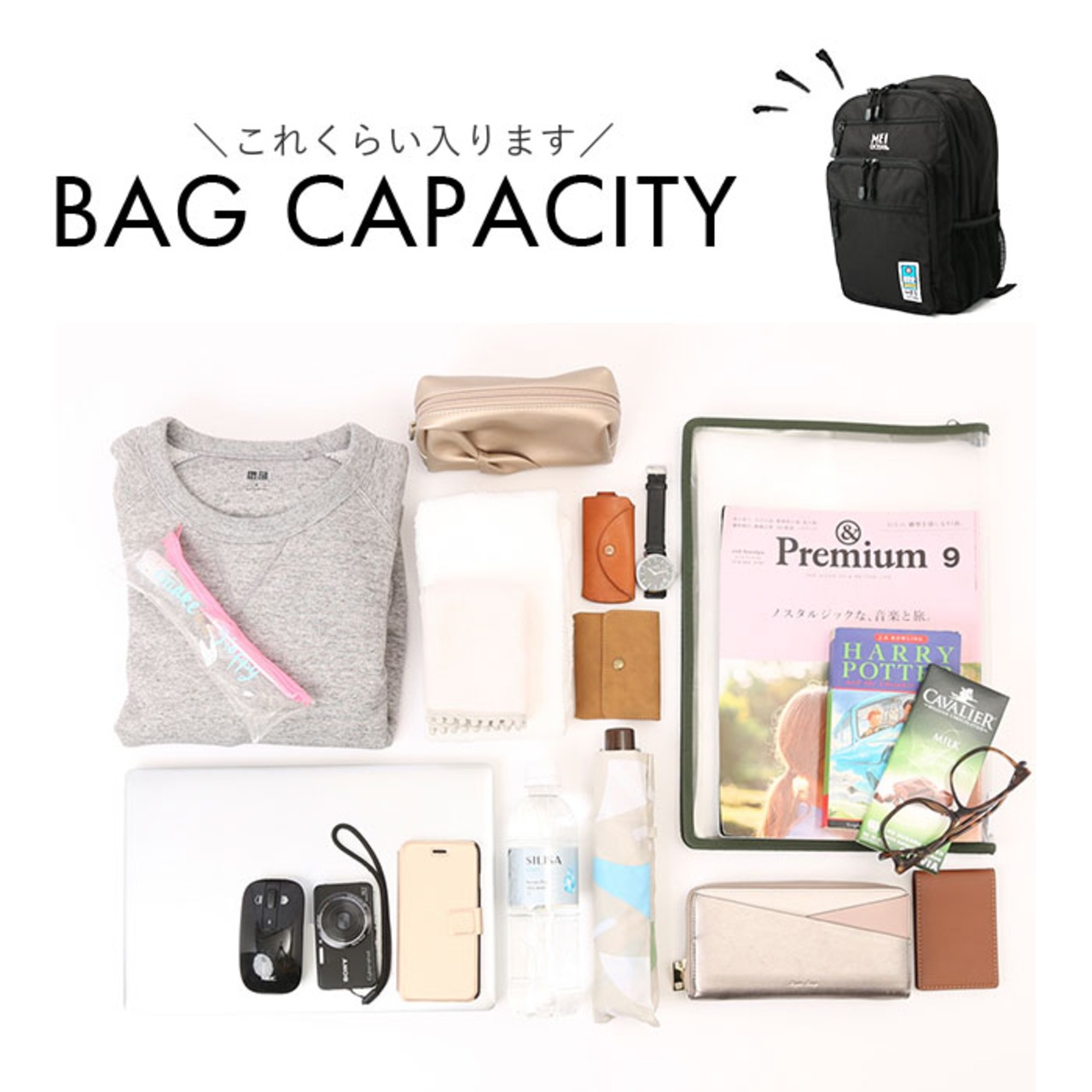 ・内外側に多数のポケットが付いているから小物類をすっきり仕分けて収納できるのもポイント。