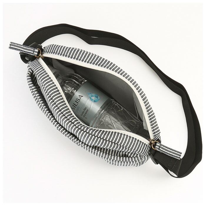 ・メイン収納はダブルファスナー式で500mlのペットボトルが横置きできるサイズ感。さらに面ファスナー式のポケットを搭載。