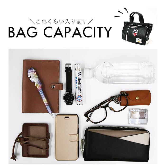 ・長財布や手帳など普段の小物の持ち運びに最適☆マチ幅もあり、厚めのポーチやスリムなお弁当の収納もOK!