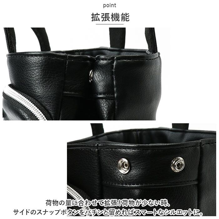 ・荷物の量に合わせて拡張!荷物が少ない時、サイドのスナップボタンをパチンと留めればスマートなシルエットに。