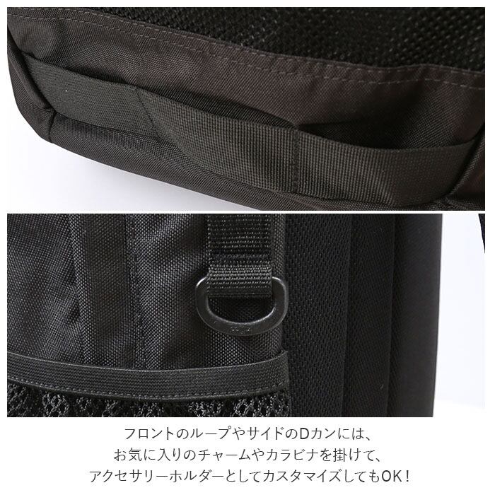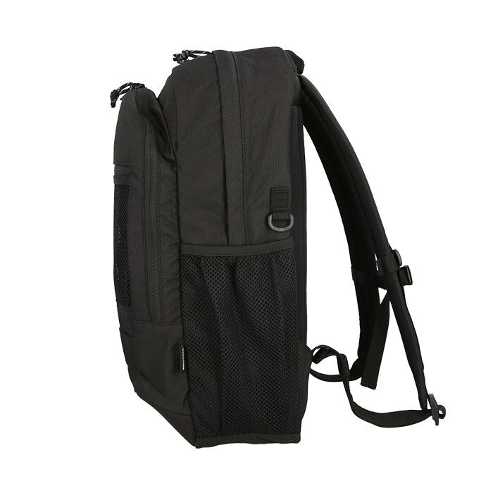 ・アウトドアで便利!バックパック両サイドには、500mlペットボトルや折りたたみ傘をちょこんと差し込めるメッシュポケットを配置。
